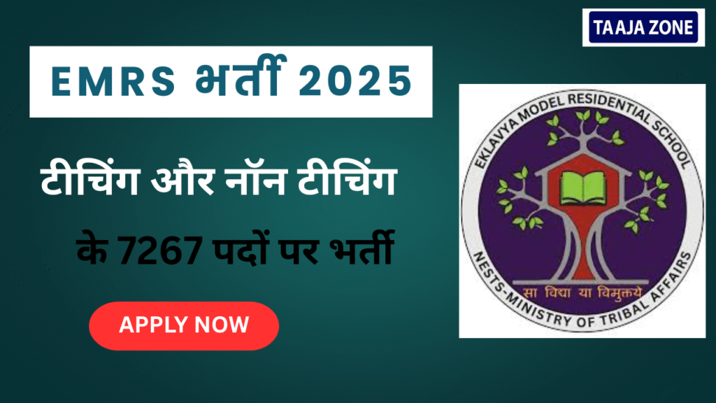 एकलव्य मॉडल आवासीय विद्यालय (EMRS) ने विभिन्न पदों के लिए EMRS भर्ती 2025 की आधिकारिक अधिसूचना जारी कर दी है। यह उन उम्मीदवारों के लिए एक शानदार अवसर है जो शिक्षण और गैर-शिक्षण क्षेत्रों में एक प्रतिष्ठित सरकारी नौकरी की तलाश में हैं। EMRS, जनजातीय छात्रों को गुणवत्तापूर्ण शिक्षा प्रदान करने के लिए भारत सरकार की एक महत्वपूर्ण पहल है।
