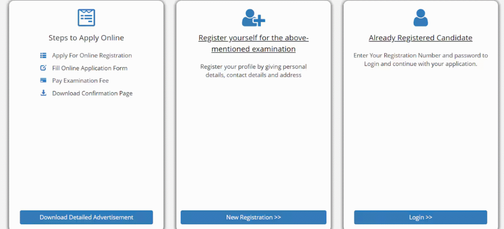 आवेदन लिंक पर क्लिक करते ही नया पेज खुलेगा जिसपर रजिस्ट्रेशन, लॉगइन और अन्य लिंक होंगे…