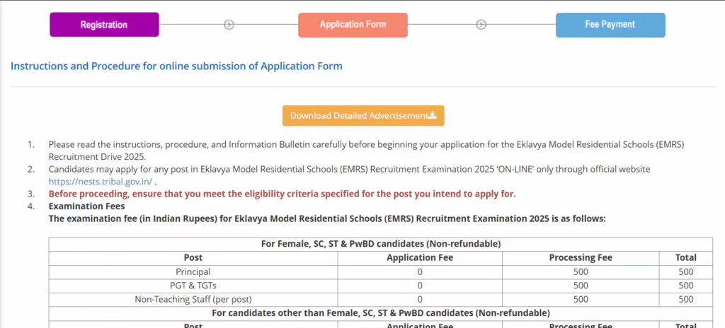 - “EMRS Recruitment 2025” की अधिसूचना लिंक पर क्लिक करें और इसे ध्यान से पढ़ें।